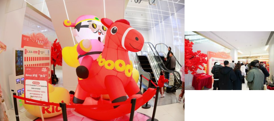 春节档期,市集特别落地“马上发财”财神美陈点位,联动年俗游园会活动,吸引1000+组家庭参与打卡,社交媒体打卡量超200次,进一步激活节日消费活力,开业期间助力广场客流同比提升29%。